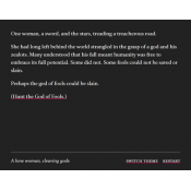 This is a linear and looping piece of IF, a short story about a woman fighting a god.